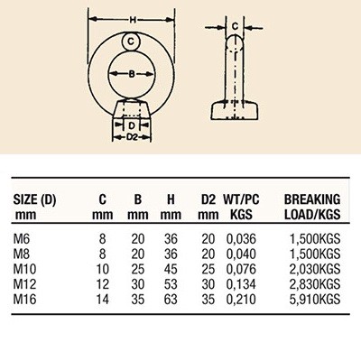 Inox eye bolts and nuts. Short type.