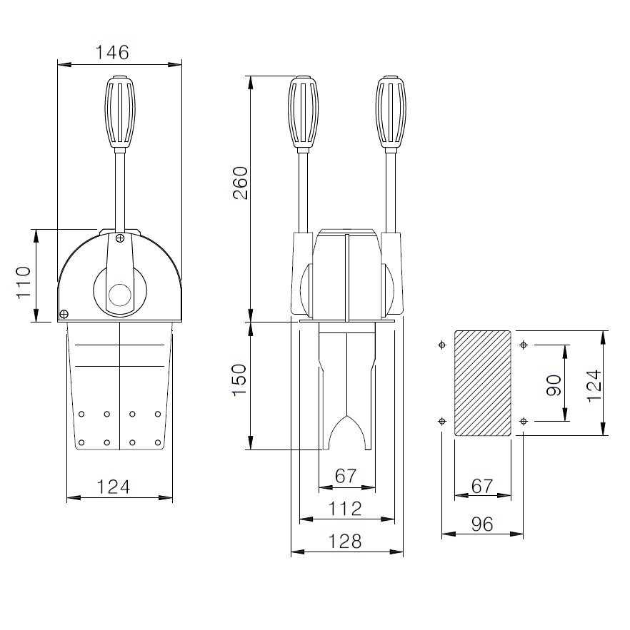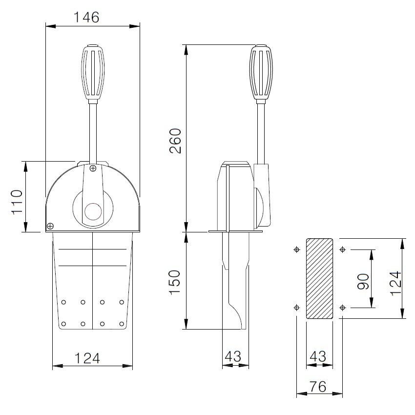 These control levers are designed to be used for outboard vessel and inboard vessel requiring light transmission load. There are two types of control levers: one is for throttle lever and the other is for clutch lever. Throttle lever has the built in brake and the handle is red color.