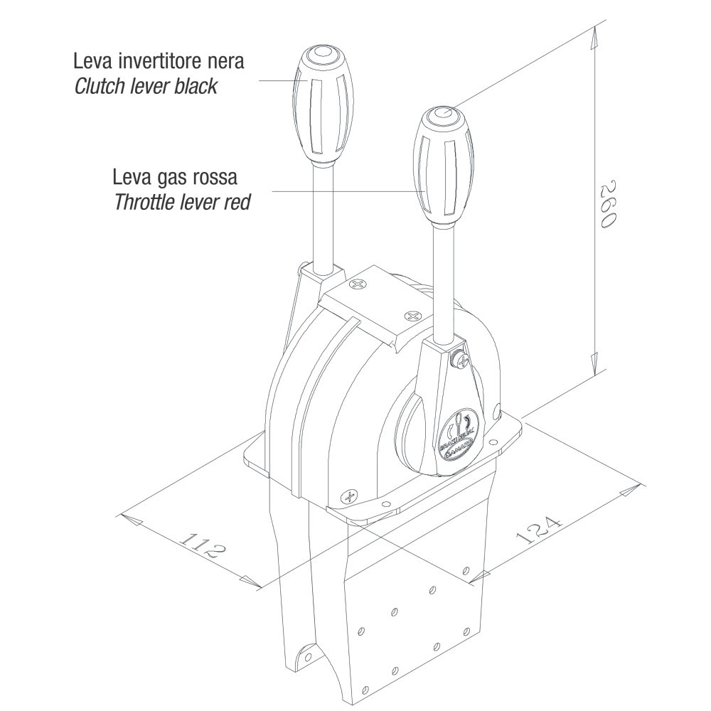 Turning this handle clockwise, brake will work and counterclockwise, brake will be released. Clutch lever, which has black handle, has 3 point stoppers such as forward, neutral and reverse. These control levers can be used in conjunction with the C.042-C.048- C.MACH0 cables.