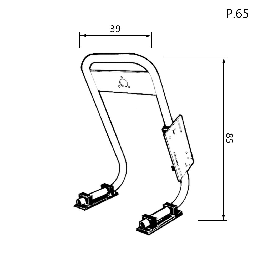Stainless steel bracket with floor mounted pedestal and lateral control box plate.