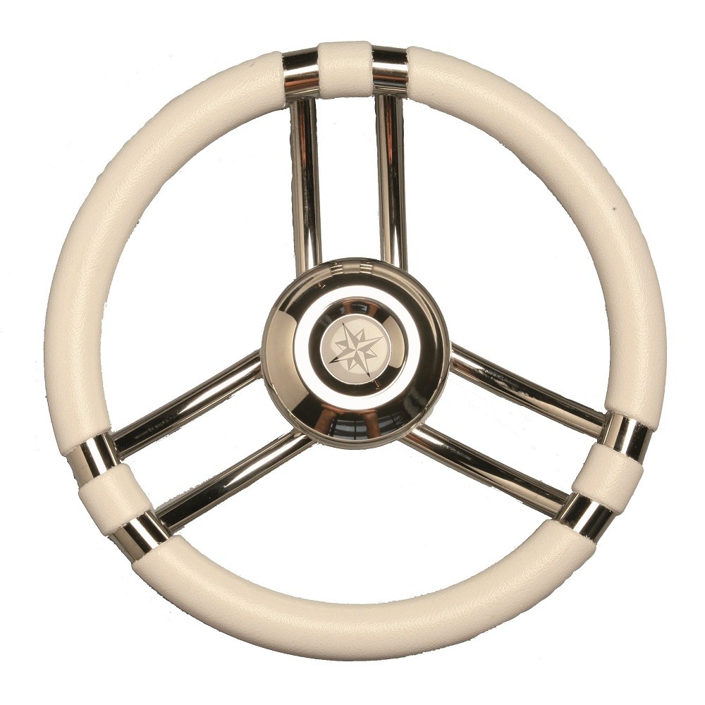 Steering wheel in stainless steel with white polyurethane handgrip Ø 350 mm.