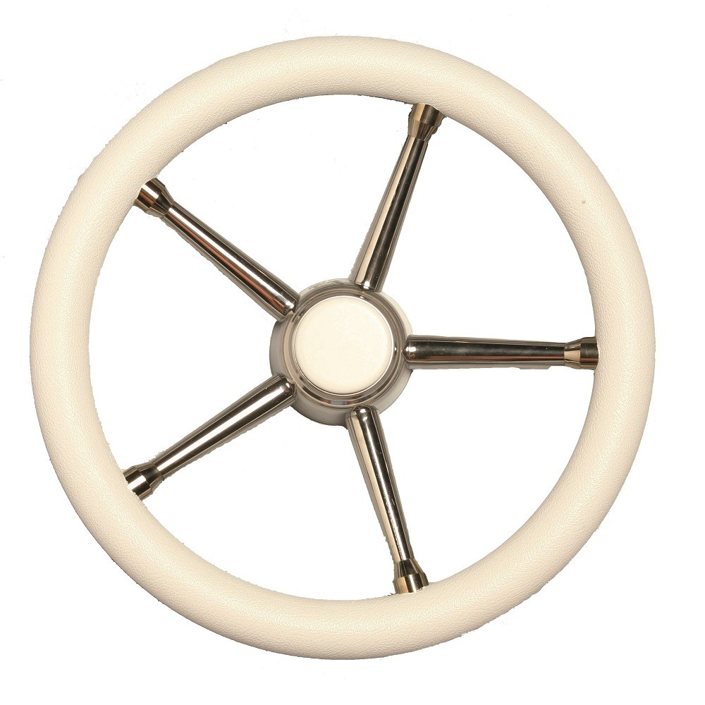 Steering wheel in stainless steel with white polyurethane handgrip Ø 350 mm.