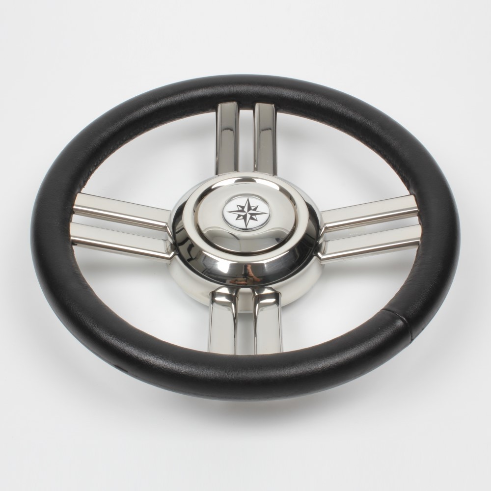 Wheel in stainless steel with black polyurethane handgrip Ø 350 mm.