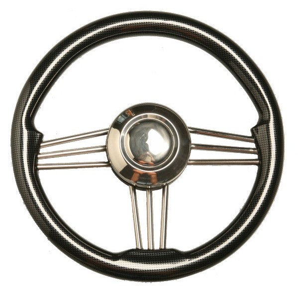 Steering wheel with stainless steel spokes, cubic type Ø 350 mm.