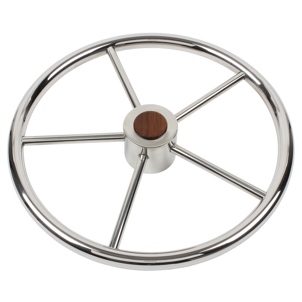 Steering wheel in stainless steel with oval handgrip.