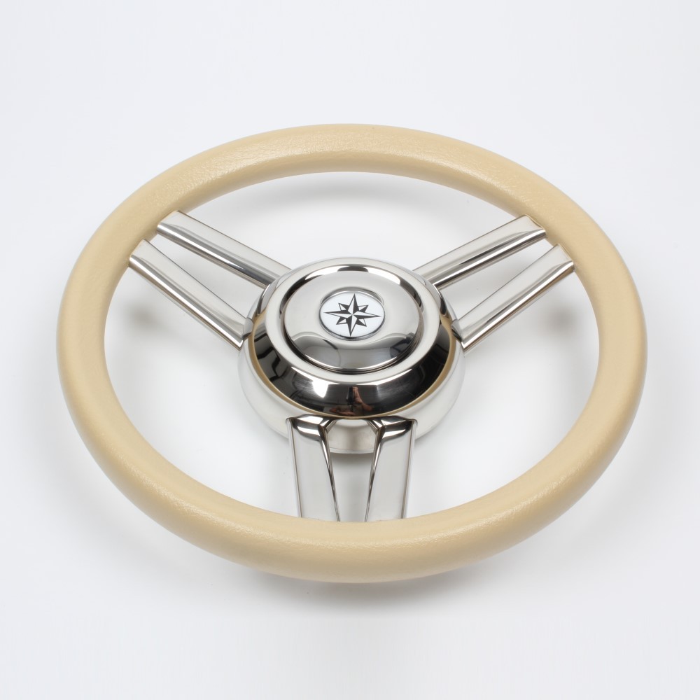 Wheel in stainless steel with cream polyurethane handgrip Ø 350 mm.