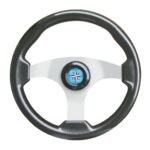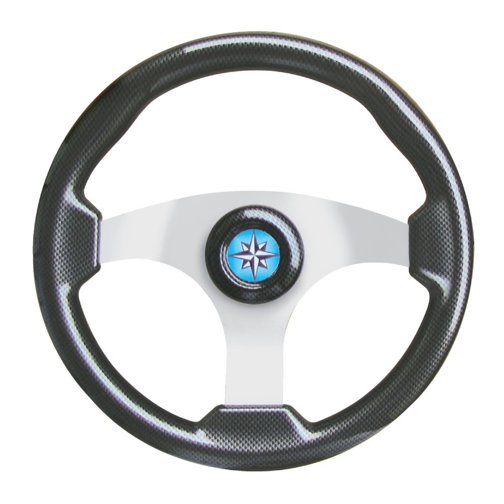 Steering wheel with carbon-fiber handgrip, alluminium spokes Ø 350 mm.
