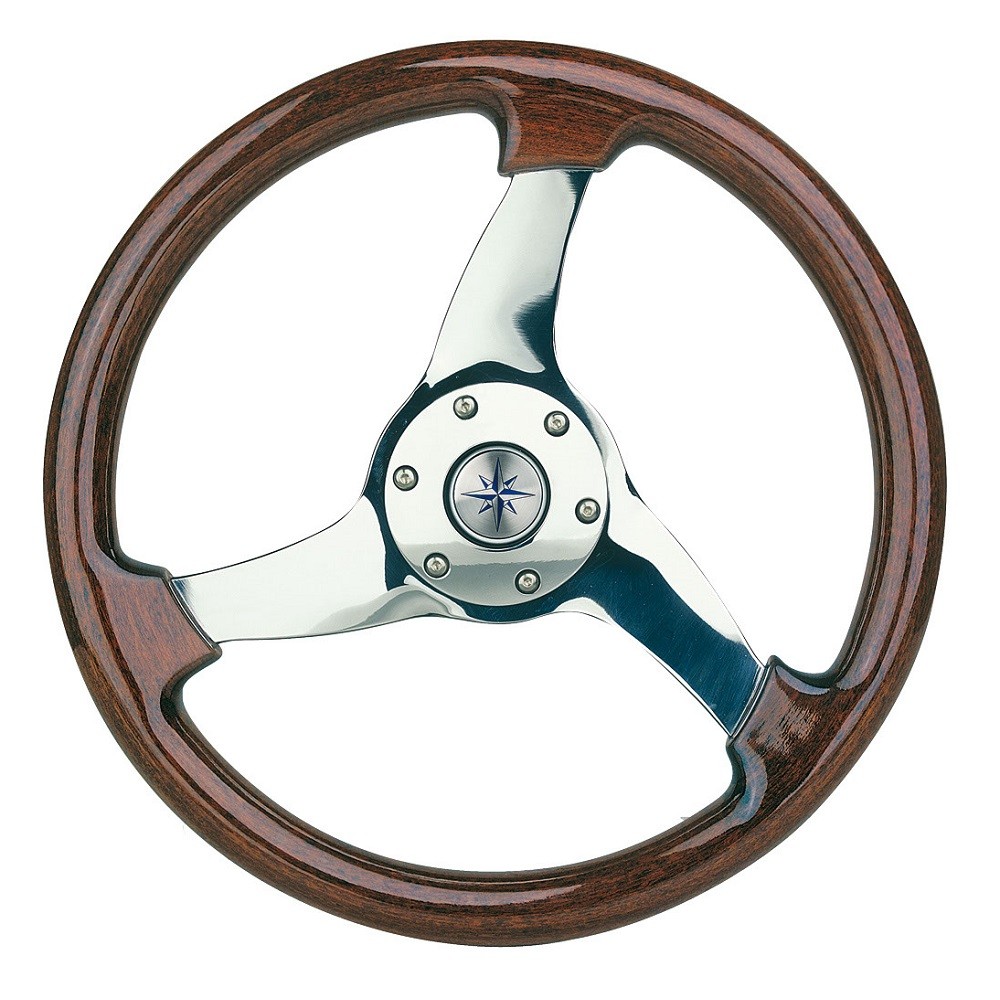 Steering wheel with mahogany handgrip Ø 350 mm.