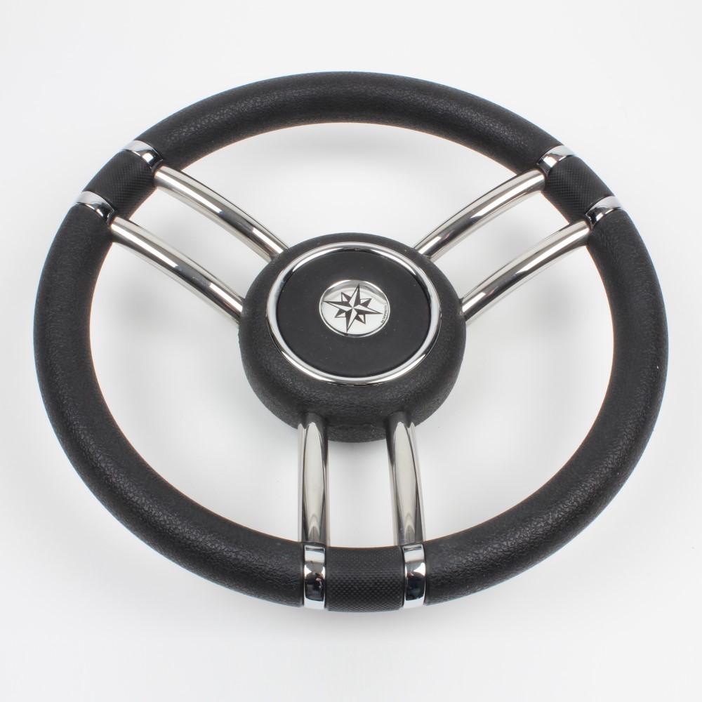 Steering wheel in stainless steel with black colour polyurethane handgrip Ø 350 mm.