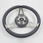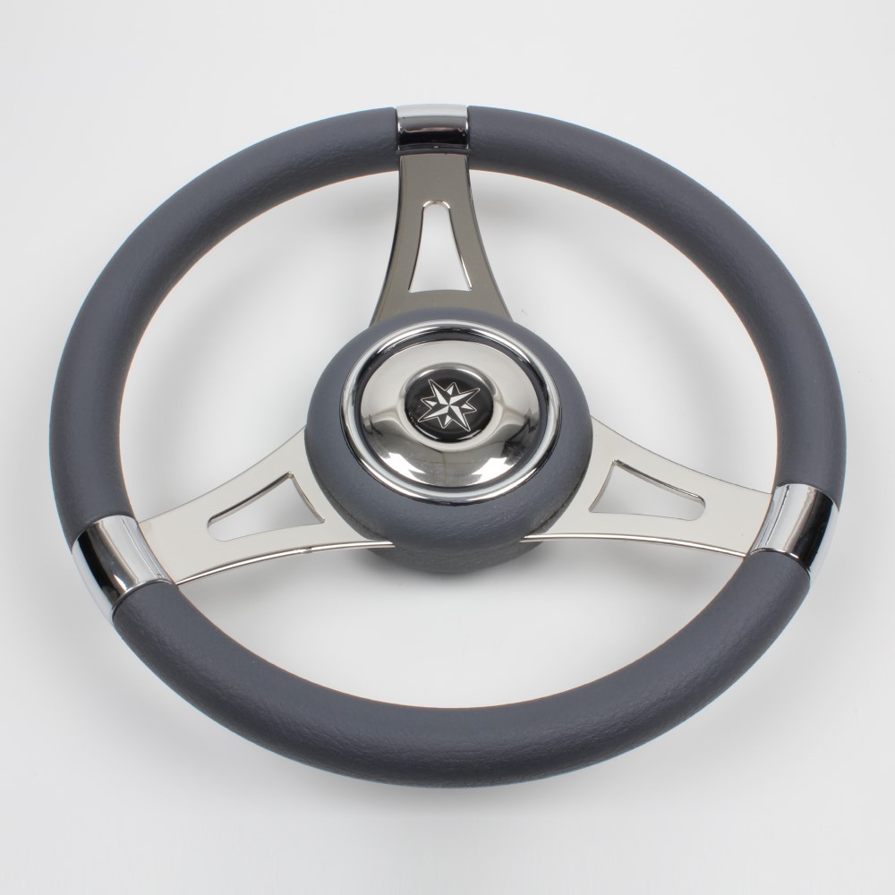 Steering wheel in stainless steel with grey colour polyurethane handgrip Ø 350 mm.