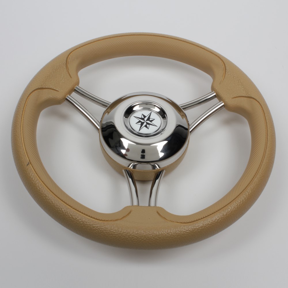 Wheel in stainless steel with ivory colour polyurethane handgrip Ø 320 mm.