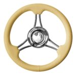 Steering wheel in stainless steel with polyurethane grip, colour cream, Ø 350 mm.