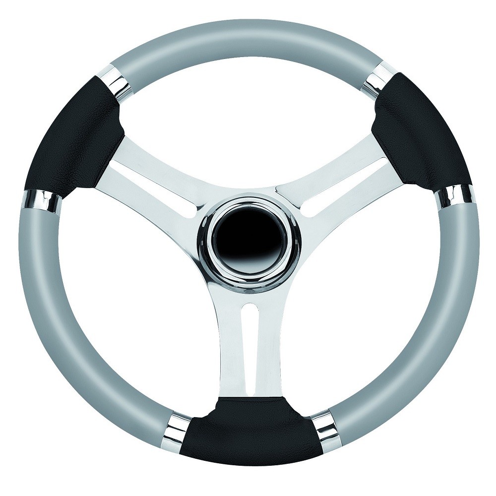 Steering wheel in stainless steel with polyurethane grip, colour black/grey, Ø 350 mm.