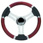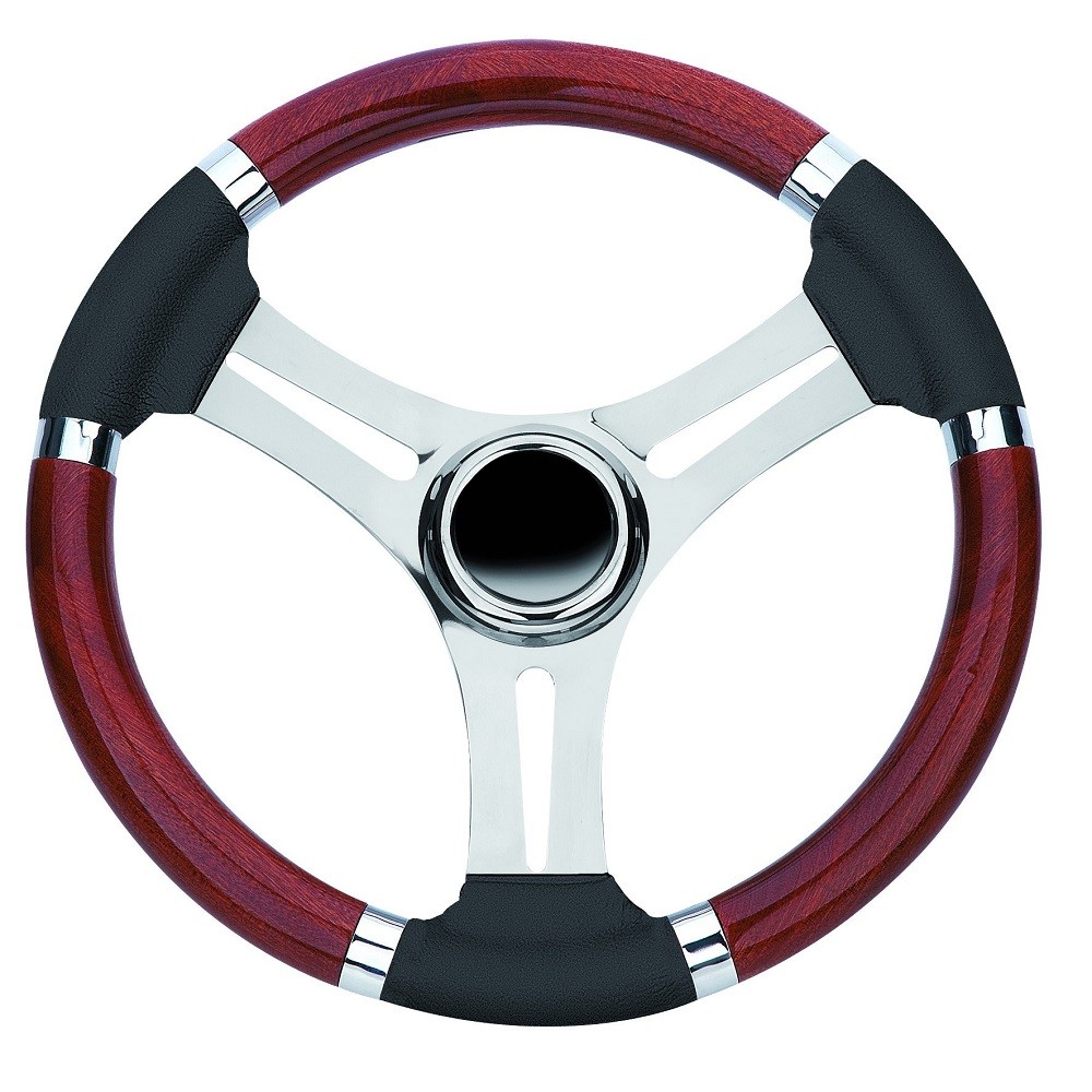Steering wheel in stainless steel with briarAND polyurethane grip, colour black, Ø 350 mm.