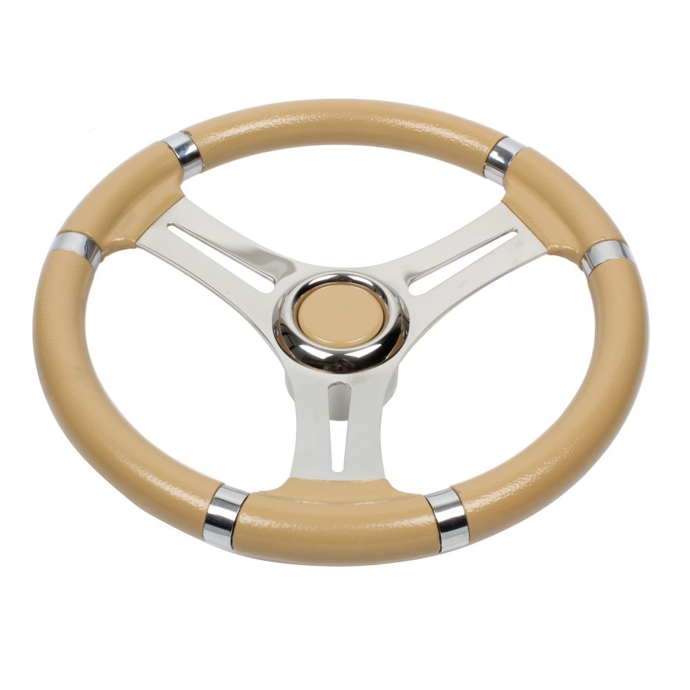 Wheel in stainless steel with cream polyurethane handgrip Ø 350 mm.