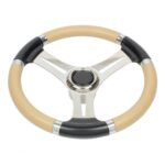 Wheel in stainless steel with black/cream polyurethane handgrip Ø 350 mm.