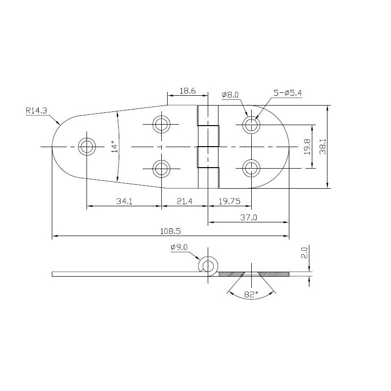 Cerniera in acciaio inox ROVESCIATA