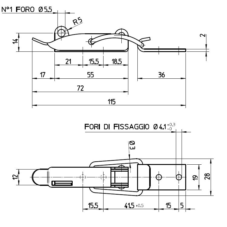 Chiusura a leva in acc. inox con foro per lucchetto. Servono per portelli, boccaporti ed usi similari. 113×28 mm