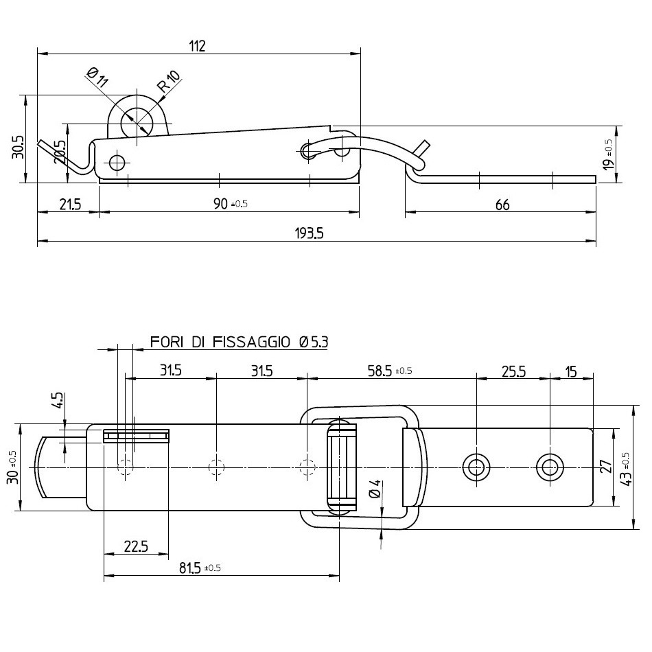 Chiusura a leva in acc. inox con foro per lucchetto. Servono per portelli, boccaporti ed usi similari. 195×42 mm