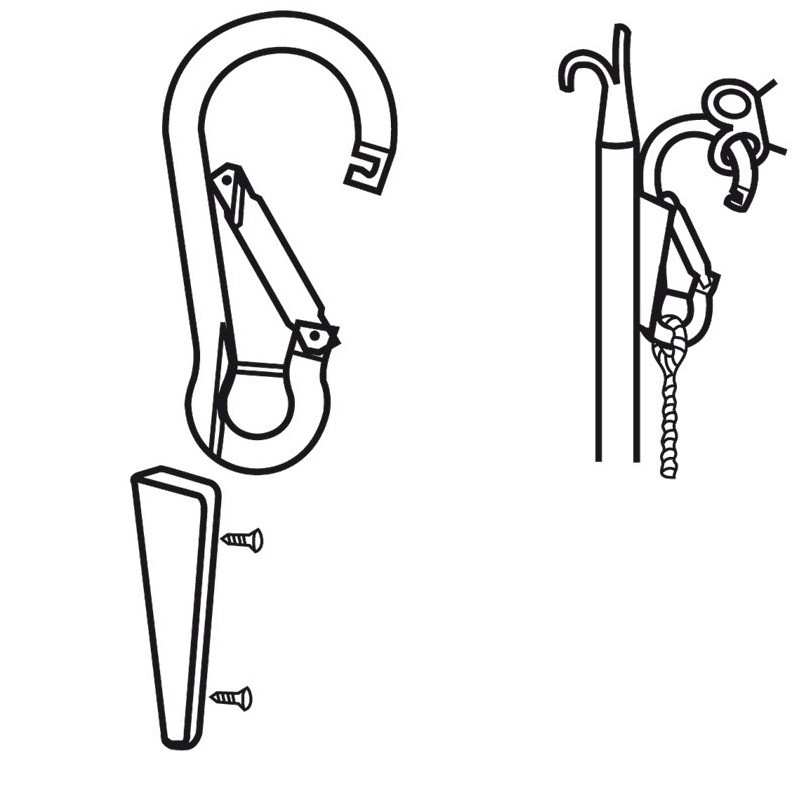 Composto da un moschettone mm. 160 e di piastrina che si applica a qualsiasi gancio di accosto preesistente, permette una facile presa del gavitello ed un ormeggio sicuro.