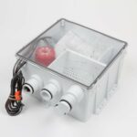 Completo di vaschetta filtro raccolta acque grigie. Pompa ad azionamento automatico a vaschetta piena.
