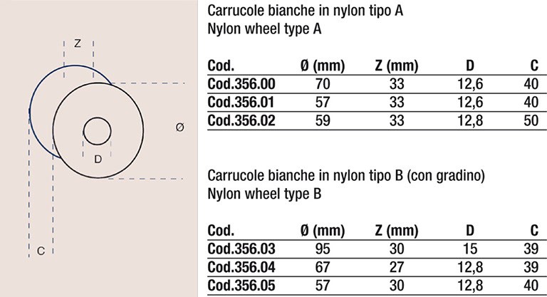 Carrucole bianche in nylon tipo A