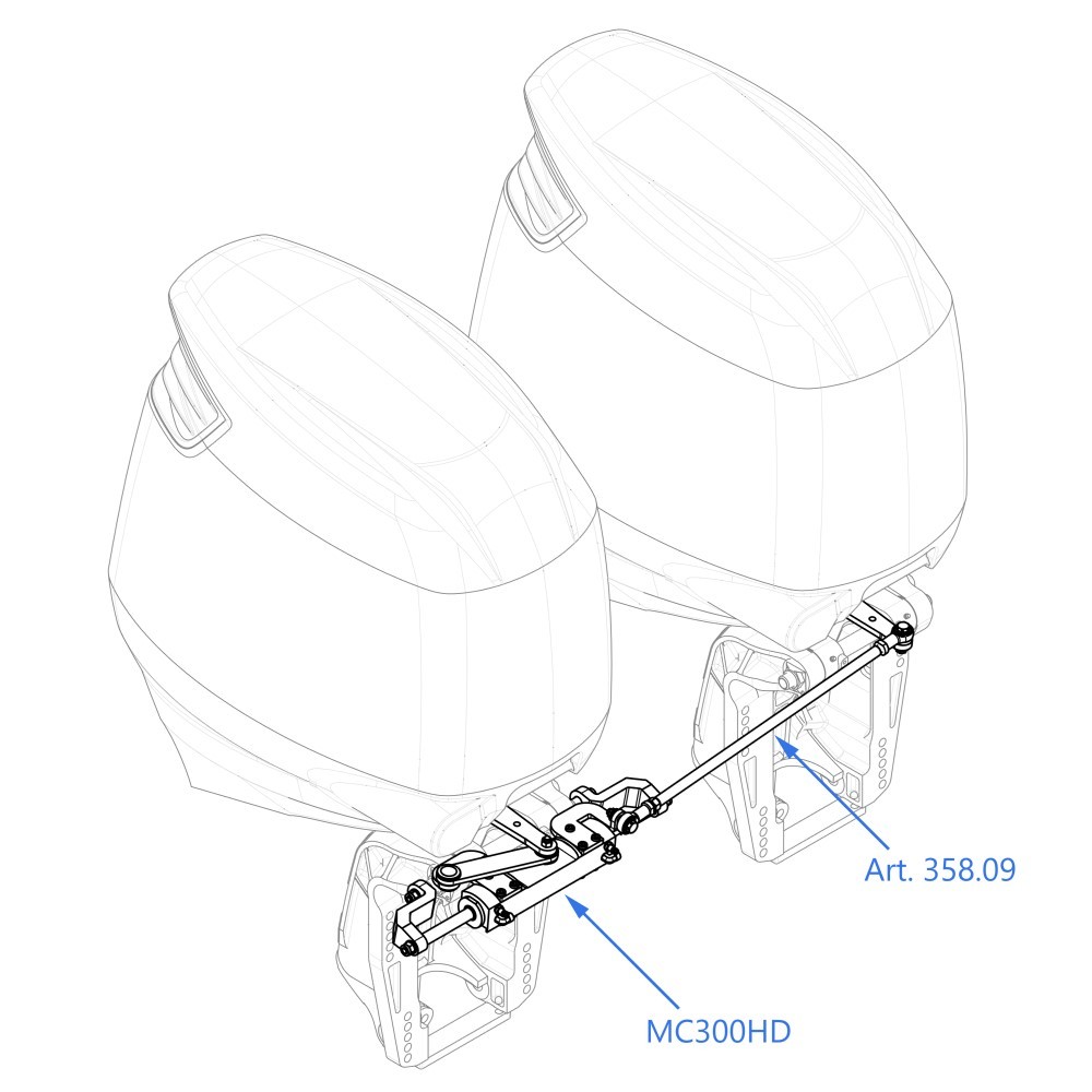 Questa barra di accoppiamento, grazie al suo sistema snodato, permette di tiltare i due motori singolarmente senza problemi di interferenze.