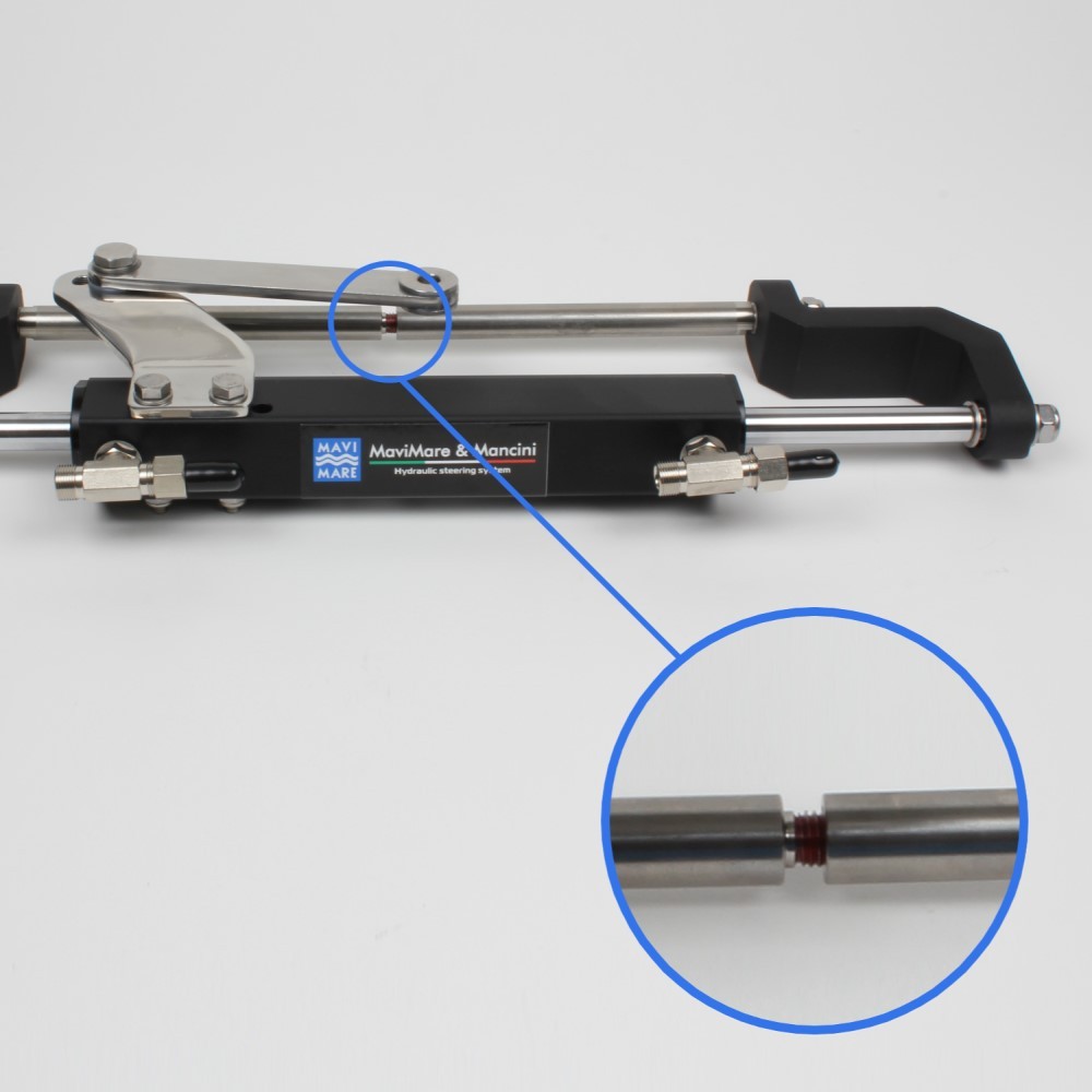 Asta di collegamento al motore composta da due metà per facilitare il montaggio/smontaggio del cilindro in condizioni di poco spazio nel pozzetto.