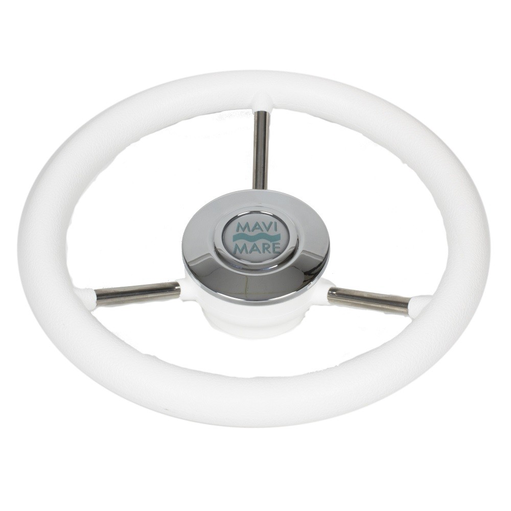 Volante in acciaio inox con impugnatura poliuretano bianco Ø 280 mm.