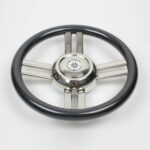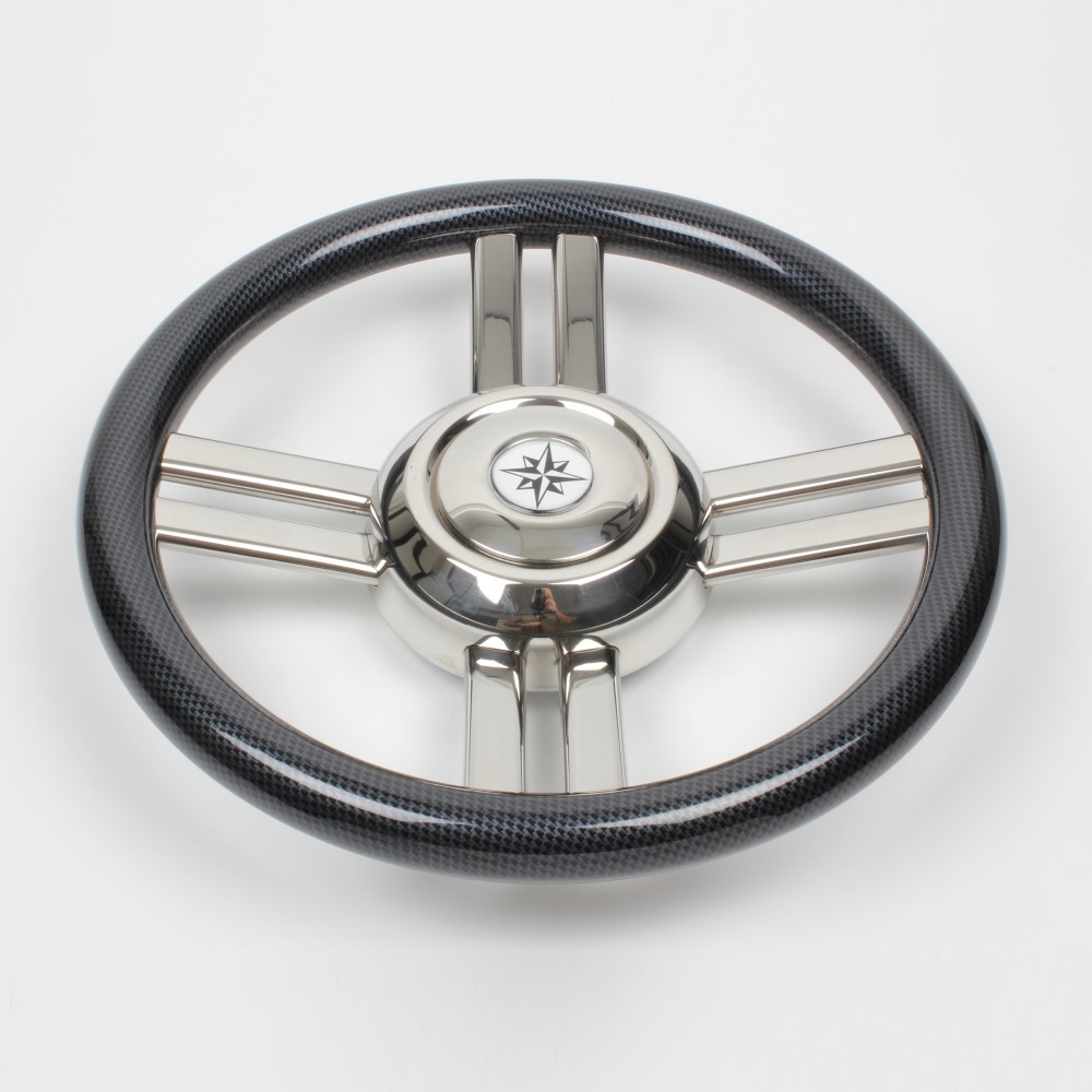 Volante in acciaio inox con impugnatura tipo cubica Ø 350 mm.