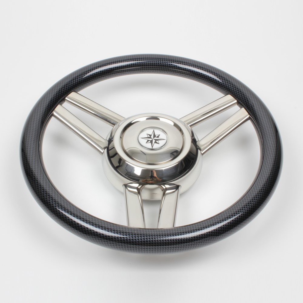 Volante in acciaio inox con impugnatura tipo cubica Ø 350 mm.