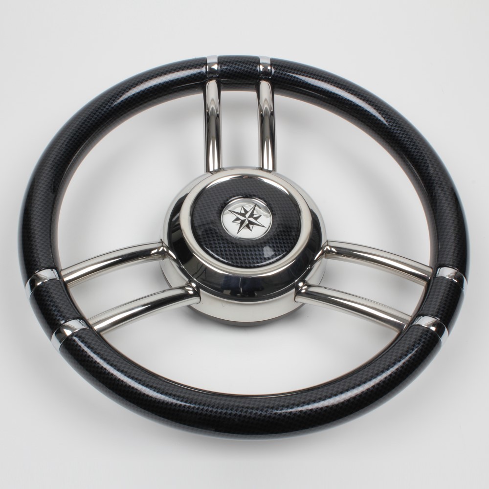 Volante in acciaio inox con impugnatura tipo carbonio Ø 350 mm.