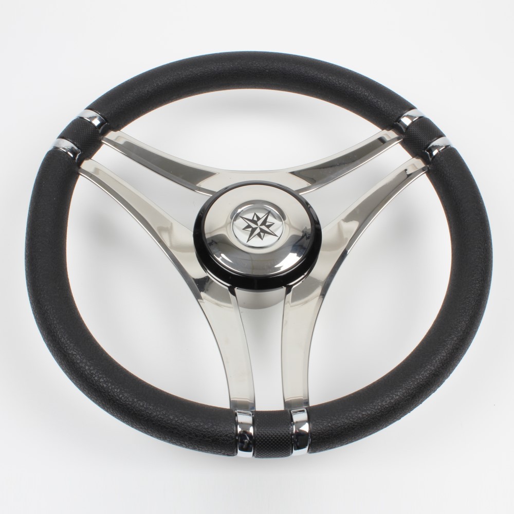 Volante in acciaio inox con impugnatura poliuretano color nero Ø 350 mm.