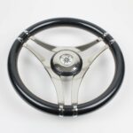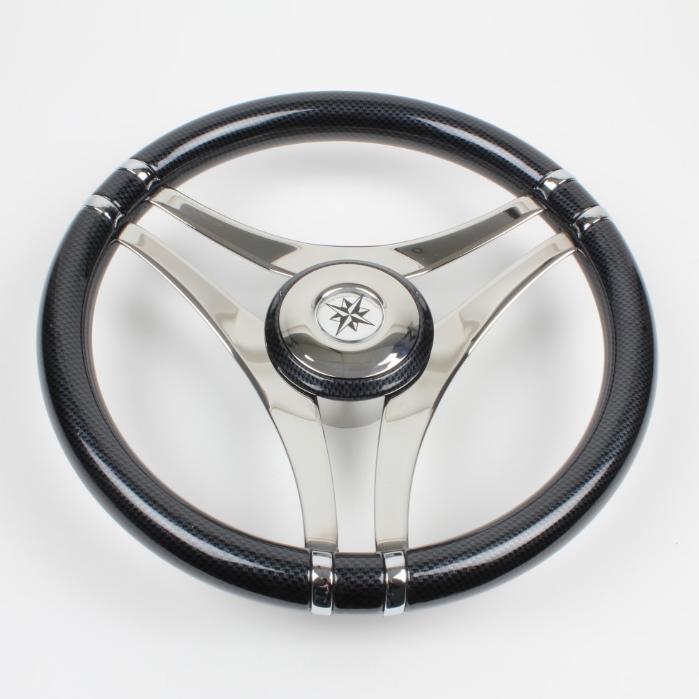 Volante in acciaio inox con impugnatura tipo carbonio Ø 350 mm.